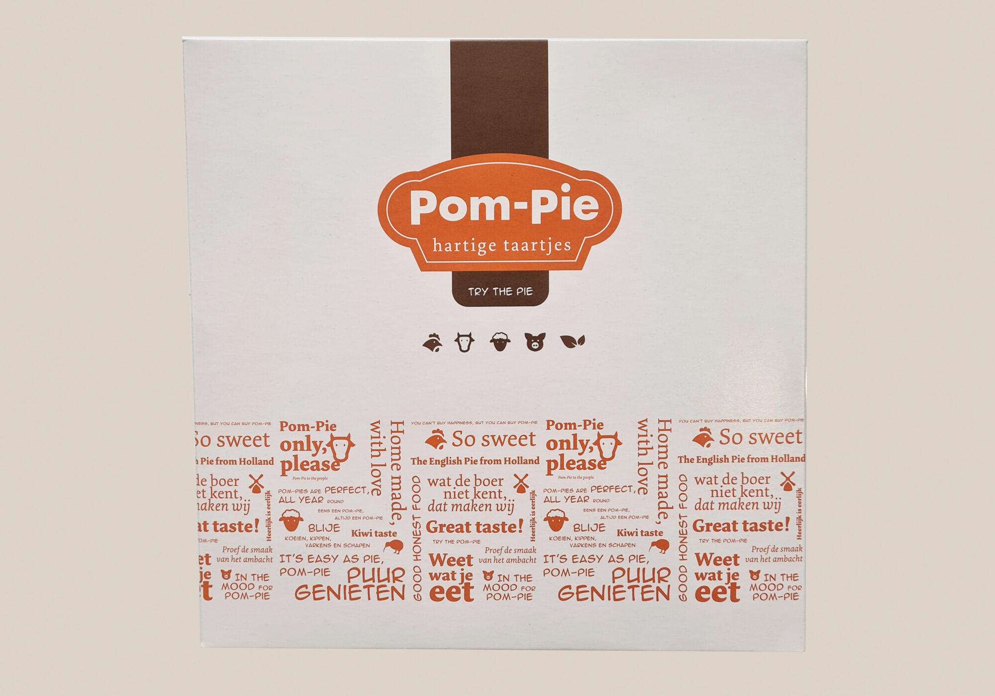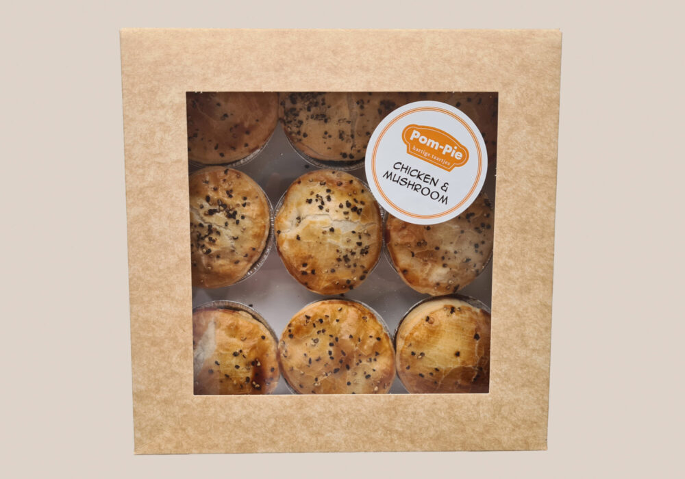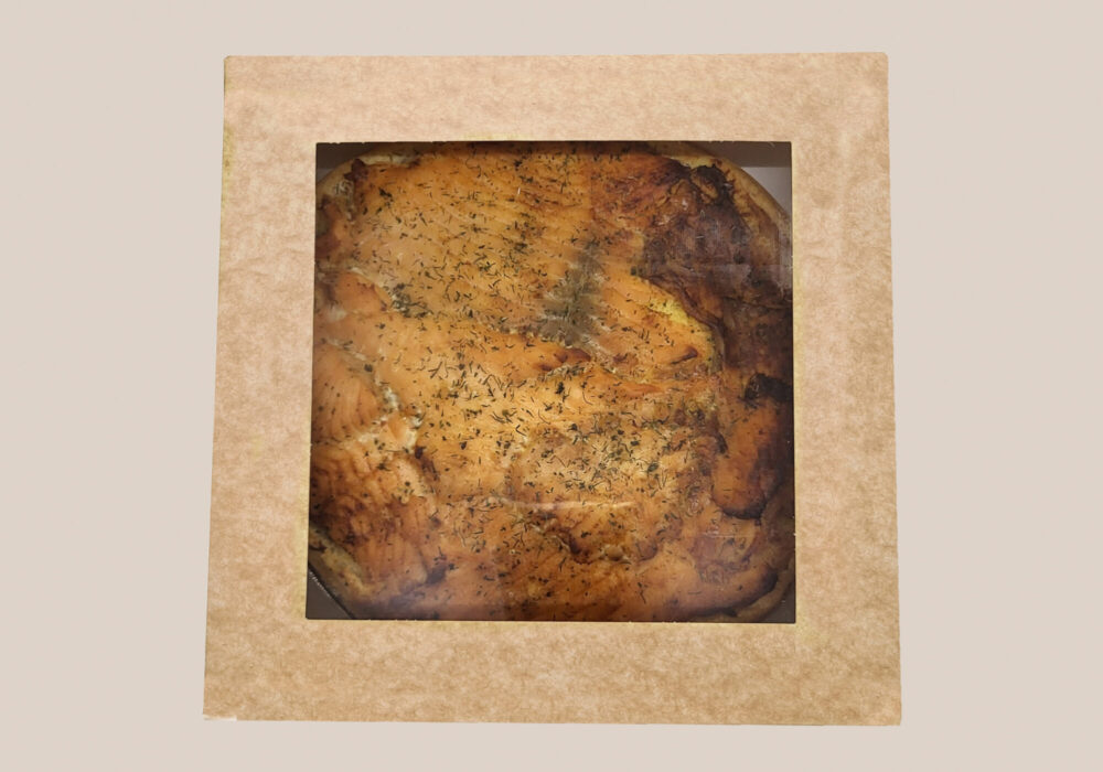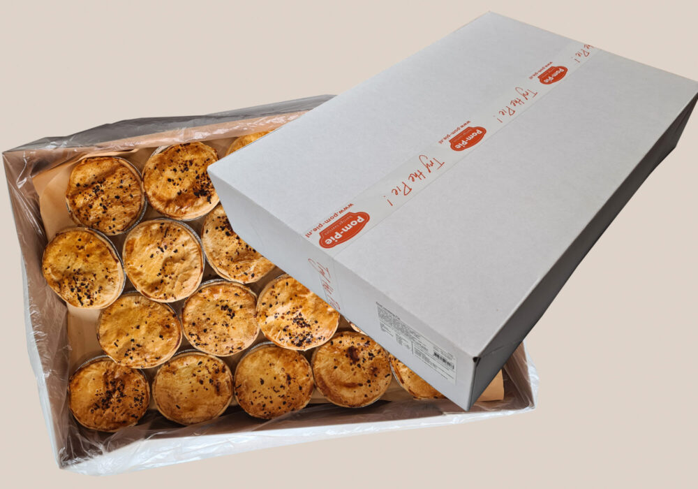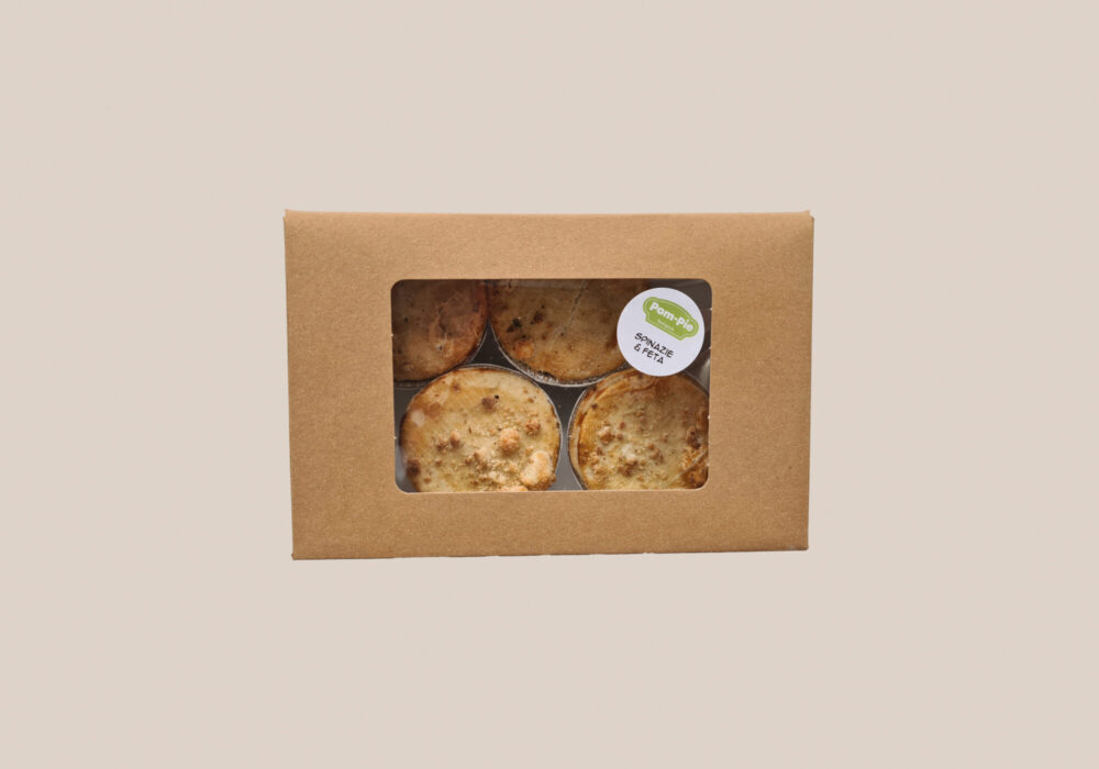 Verpakkingen Tansparant zakje Consumenten verpakking Voor Pies – 150 of 225 gram Voor Quiches – 180 gram Kartonnen doosje met venster Voor 4 Pies – 150 gram Kartonnen doosje met venster Voor 9 Pies – 50 gram Kartonnen doosje met venster Voor 1 Quiche Groot – 900 gram Kartonnen doosje met venster Kleine maat 4 pies – 50 gram Kartonnen doosje zonder venster Voor 1 Familie Pie Groot – 900 gram Bulk verpakking Voor 30 Pies – 225 gram Voor 40 Pies – 150 gram